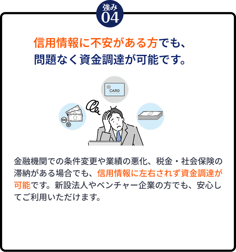基本的には、個人事業主の方から法人の方まで、どなたでもご利用いただけます。ファクタリングでは、申込者ご本人の信用や法人格よりも、売掛債権の信頼性が重視されます。そのため、審査においては取引先企業の信用状況や企業規模などが判断材料となる場合があります。