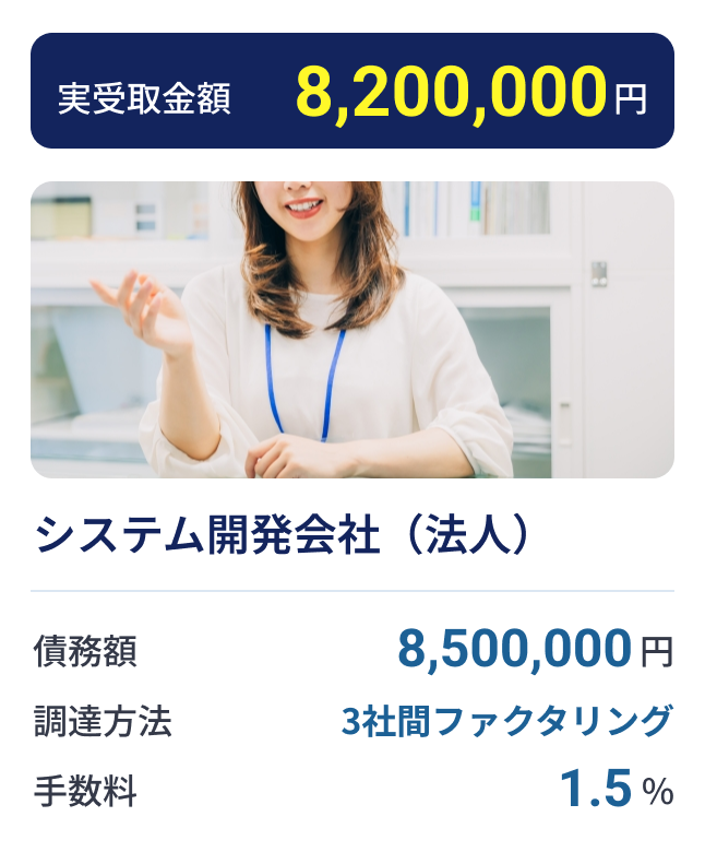 ご利用は、売掛債権の請求額が30万円以上から可能となっております。